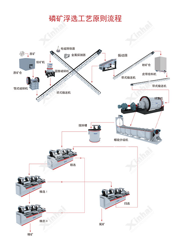 大象彩票在分选过程中,单一的正浮选工艺往往会因泡沫产量大、泡沫发黏流动性差等原因,使得常规浮选设备难以适应而导致较低的浮选效率,不能满足选别要求,因此,对于磷矿石的选别,常采用反浮选工艺,或正反浮选工艺相结合的方法。磷矿自身性质决定了选别工艺,而选别工艺的特点决定了浮选设备的特殊性。
